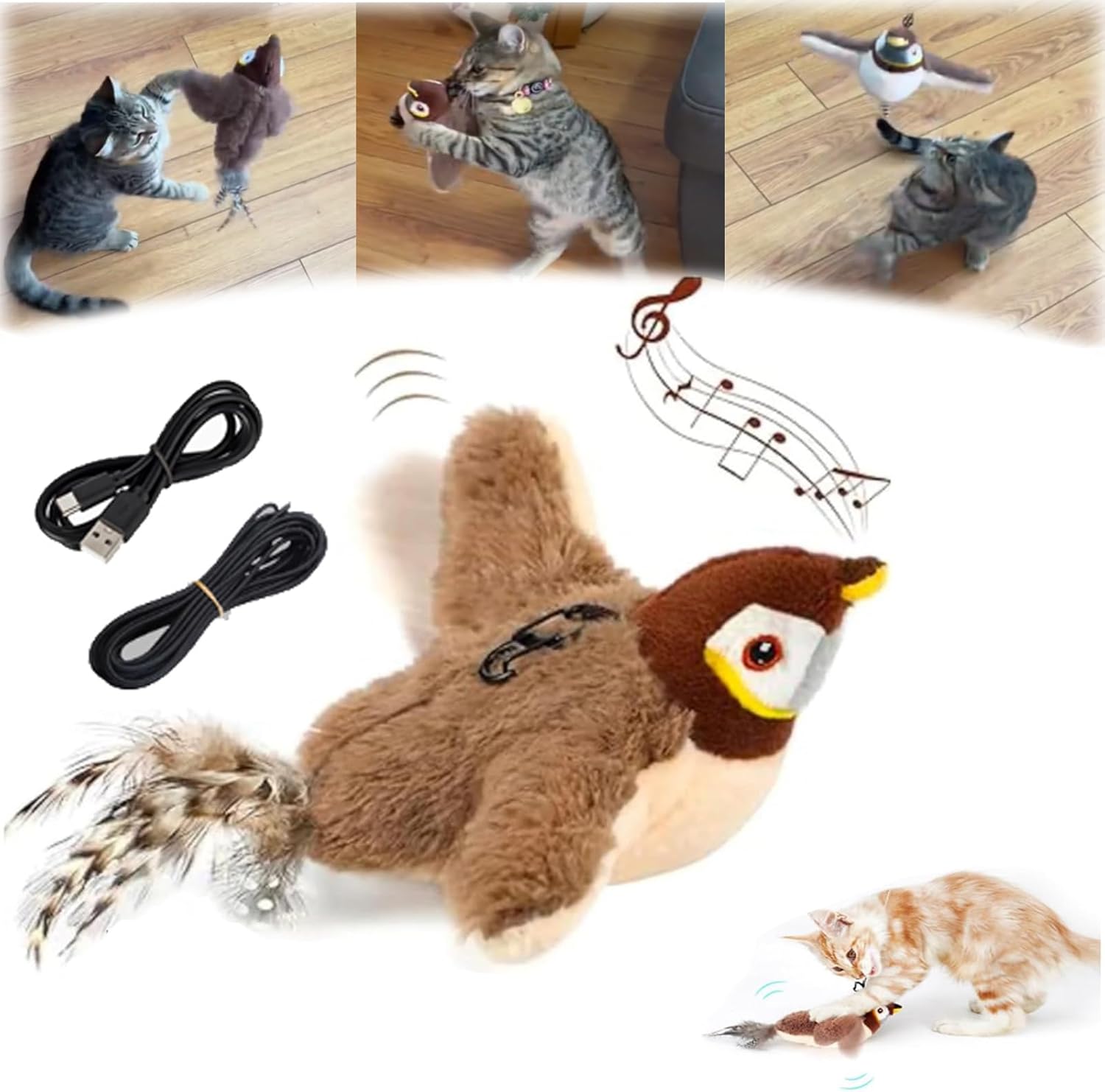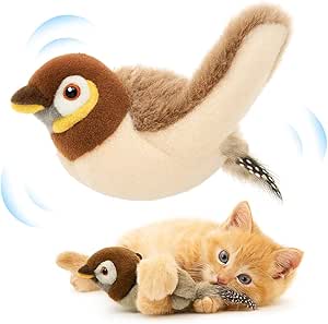 🐾 Aktywowana dotykiem akcja trzepotania – miękki pluszowy ptak nasączony naturalną kocimiętką, która pobudza instynkt łowiecki Twojego kota